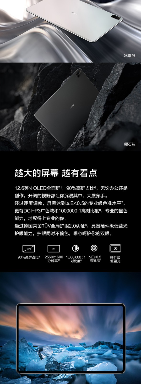 華為HUAWEI MatePad Pro 12.6英寸鴻蒙HarmonyOS系統(tǒng)OLED屏幕平板電腦學(xué)習(xí)8GB12GB內(nèi)存 前白后冰霜銀