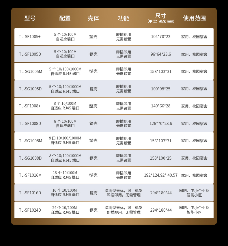 顏色分類: 5口百兆 鋼殼TL-SF1005D 5口百兆 特惠TL-SF1005+ 8口百兆 鋼殼TL-SF1008D 8口百兆 特惠TL-SF1008+ 5口千兆 鋼殼 TL-SG1005D 5口千兆 塑殼 TL-SG1005M 8口千兆 塑殼TL-SG1008M 8口千兆 鋼殼TL-SG1008D 【16口百兆】塑殼TL-SF1016M 【16口百兆】鋼殼TL-SF1016D 【24口百兆】標(biāo)準(zhǔn)款TL-SF1024D